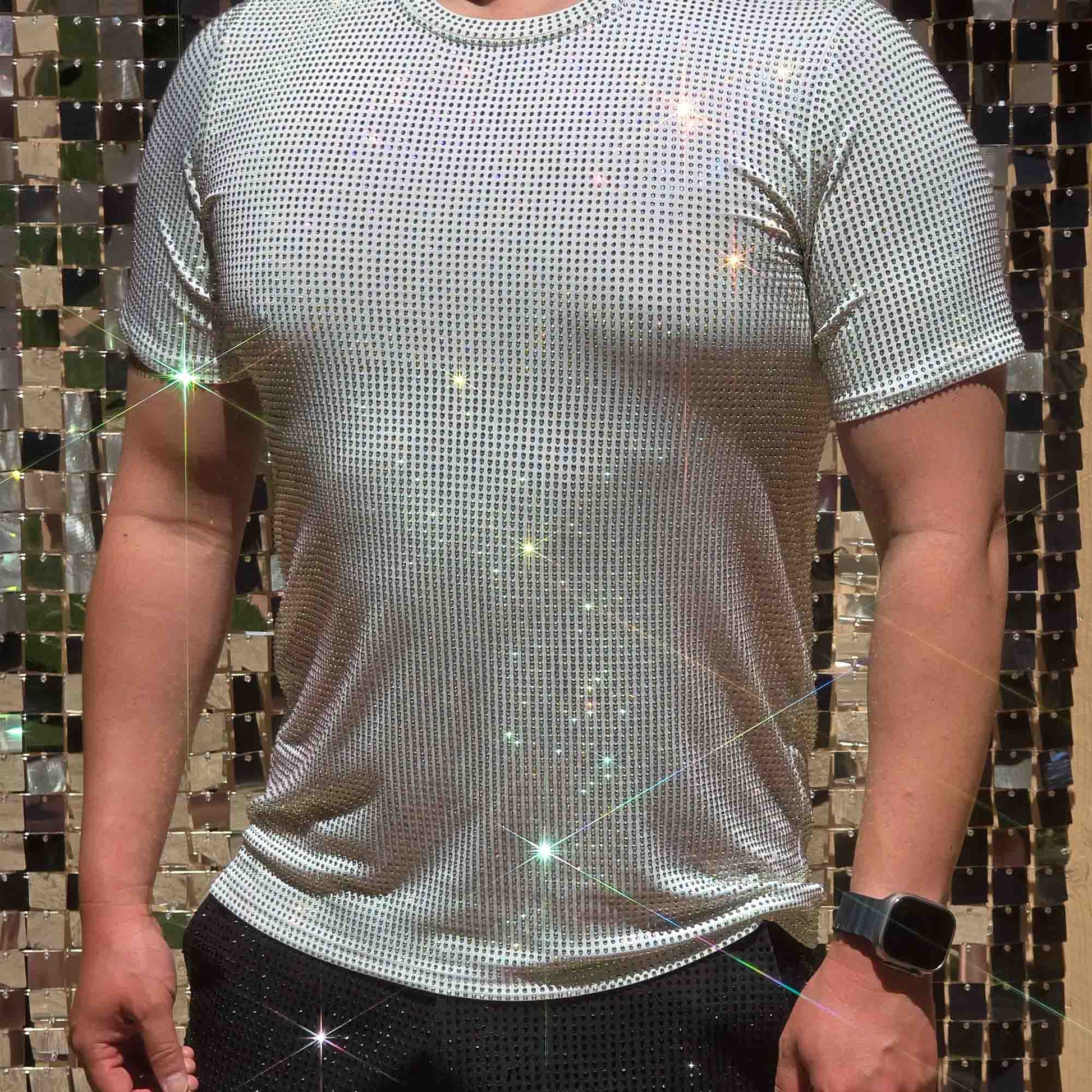 Step into the spotlight with our handmade, elegant T-shirt adorned with Clear AB rhinestones on white fabric. This masterpiece captures the essence of elegance, crafted from premium materials for enduring beauty and durability. Aglow with an array of gems, its splendor is impossible to encapsulate through imagery alone. Seize the moment and transform every entrance into a grand reveal with this T-shirt, a blend of charm and poise.